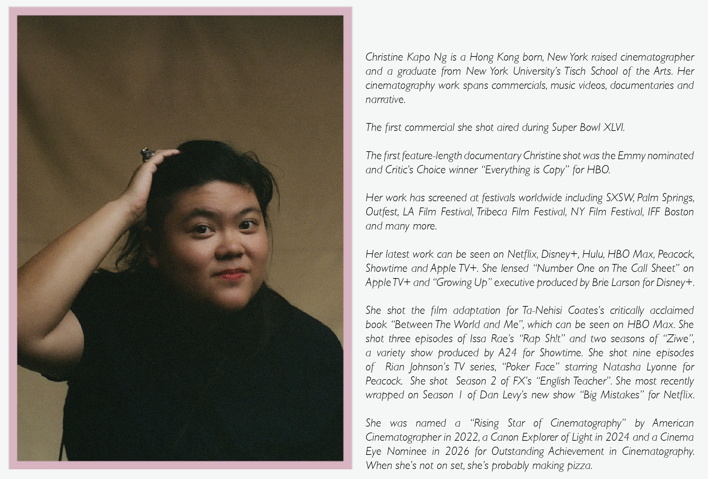 2022 - American Cinematographer - Christine Ng named ASC Rising Star